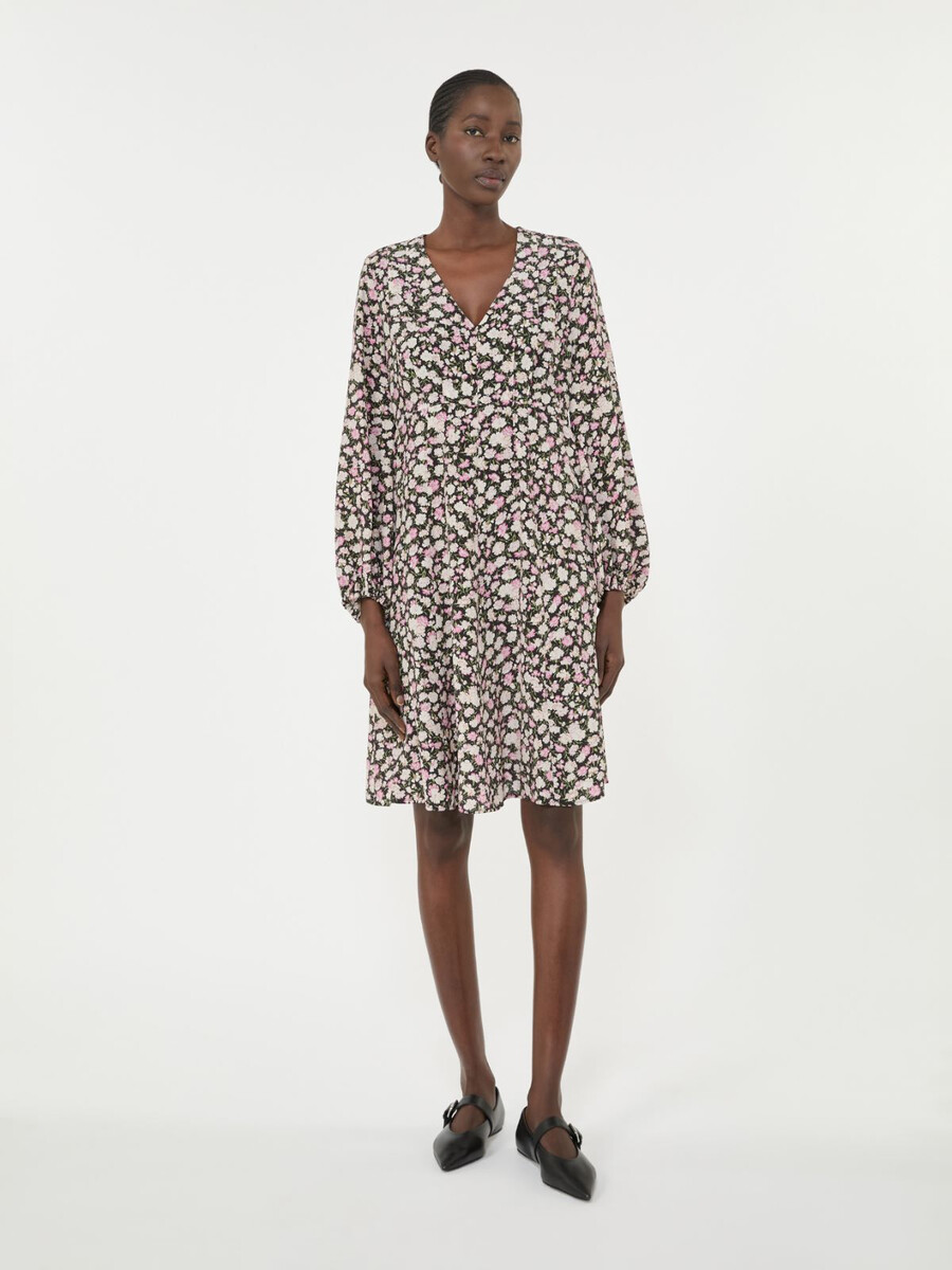Robe courte à la coupe décontractée et à la taille relativement cintrée.