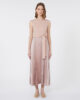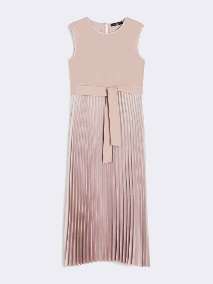 Robe longue à jupe ample en satin plissé effet soleil.