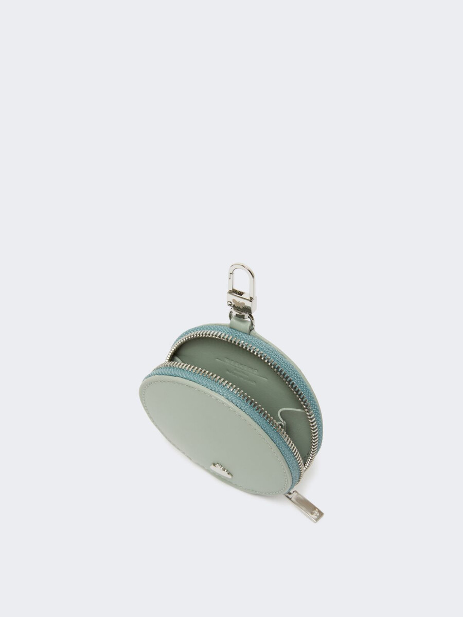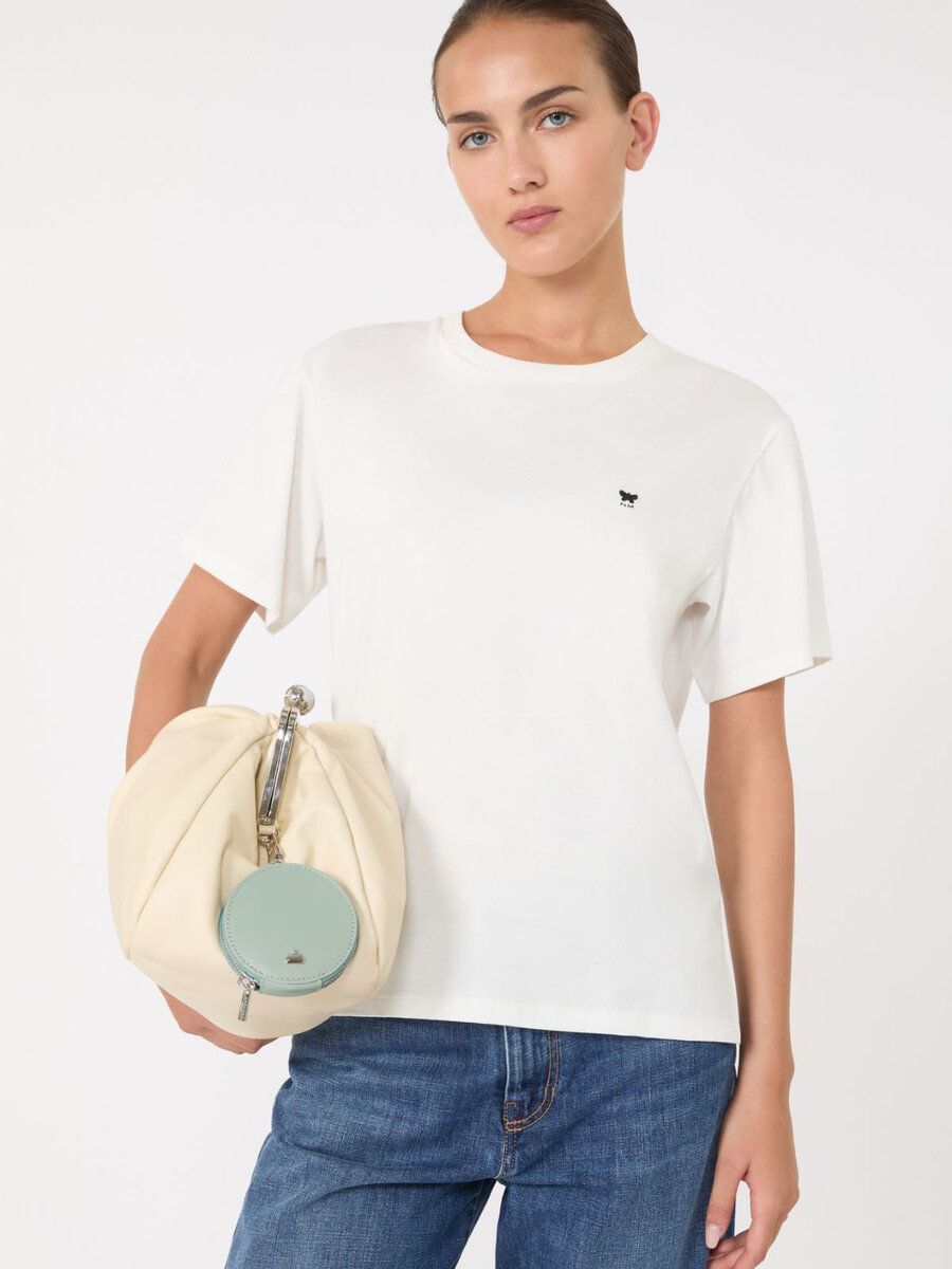 Sac rond personnalisé avec un détail Pasticcino Bag en métal sur le devant. Il est muni d’un petit fermoir en métal compatible avec les sacs Weekend Max Mara.