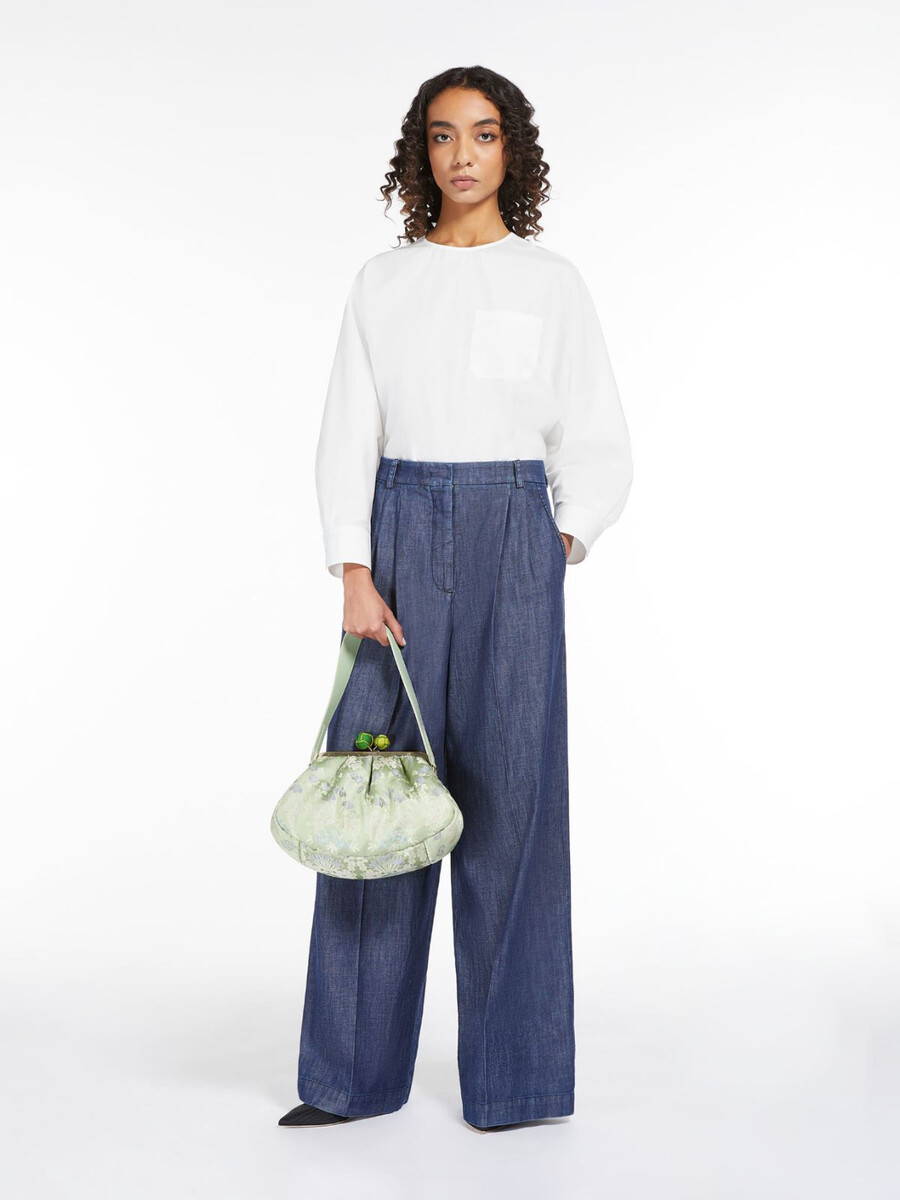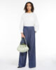 Le Pasticcino Bag World Tour est de retour, cette fois-ci au Japon, après Venise et Paris. Un voyage à la découverte des traditions séculaires et de l’excellence artistique du Pays du Soleil Levant, des tissages raffinés des kimonos traditionnels à l’art ancestral du tissage de cordes. Le Pasticcino Bag « Trésor du Japon » capture l’essence de ce voyage : l’élégance et la grâce japonaises s’incarnent dans un accessoire au charme et au style uniques. Ce modèle en satin de soie mélangée est orné d’un motif jacquard et de détails en lurex. Cette saison, le fermoir iconique est recouvert d’une corde de soie tissée à la main, tandis que la structure métallique arbore le logo Weekend Max Mara. Poche de rangement pratique et étiquette intérieure griffée. Ce modèle en édition limitée est numéroté et gravé sur la structure. Dimensions : 31 x 13 x 21 cm.