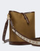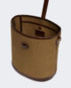 Grand sac seau à base ovale inspirée des années 70/80. Bandoulière amovible en cuir – portée épaule ou croisée – avec fermoir réglable et anneau en D pour attacher de petits accessoires en cuir.
