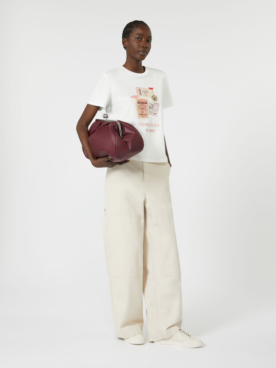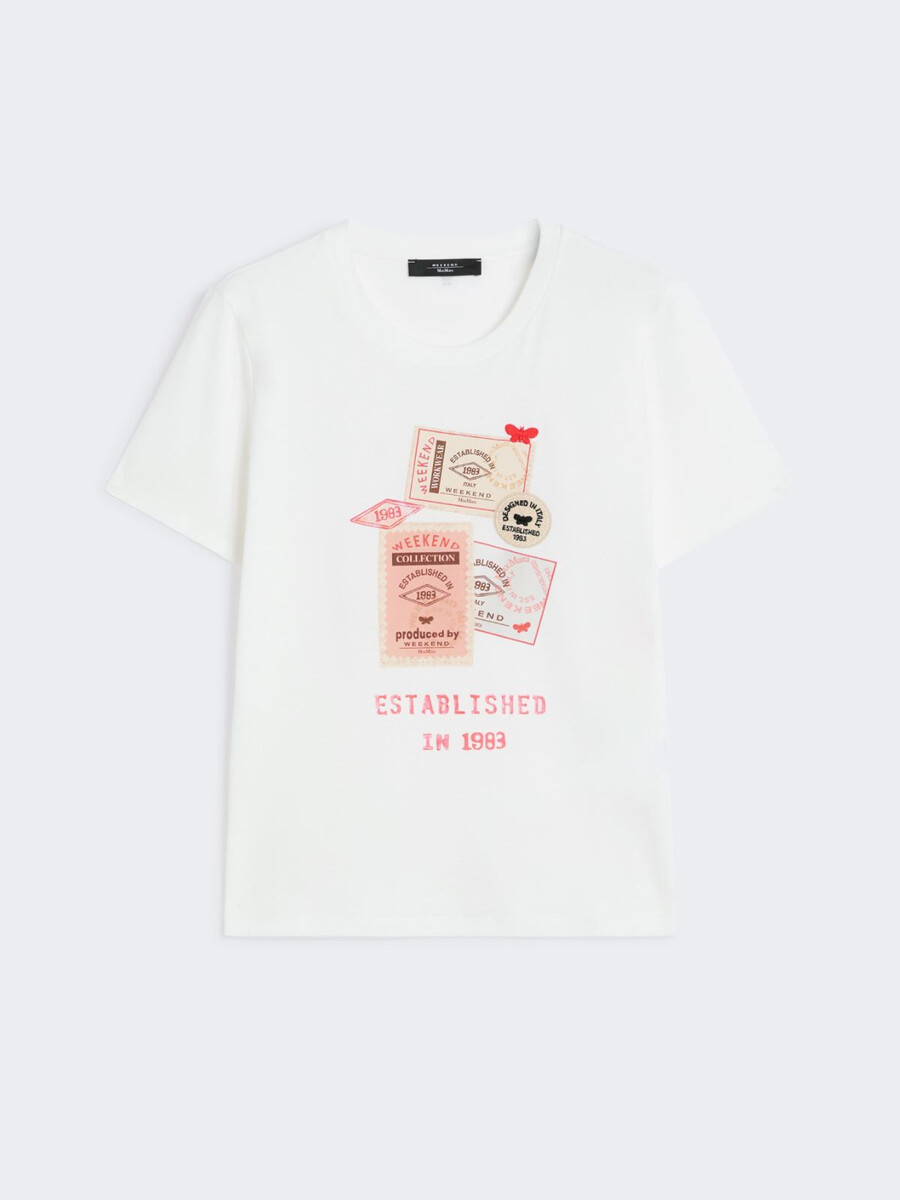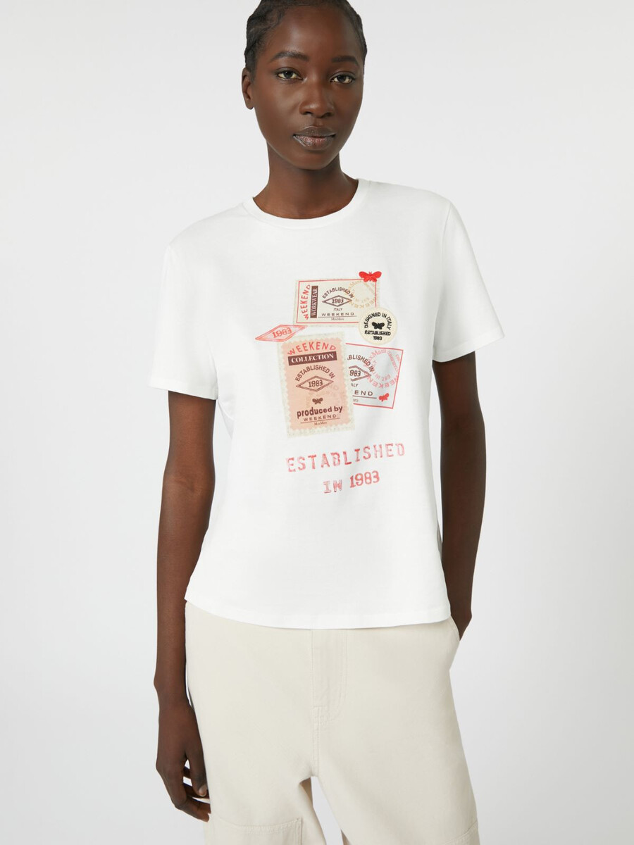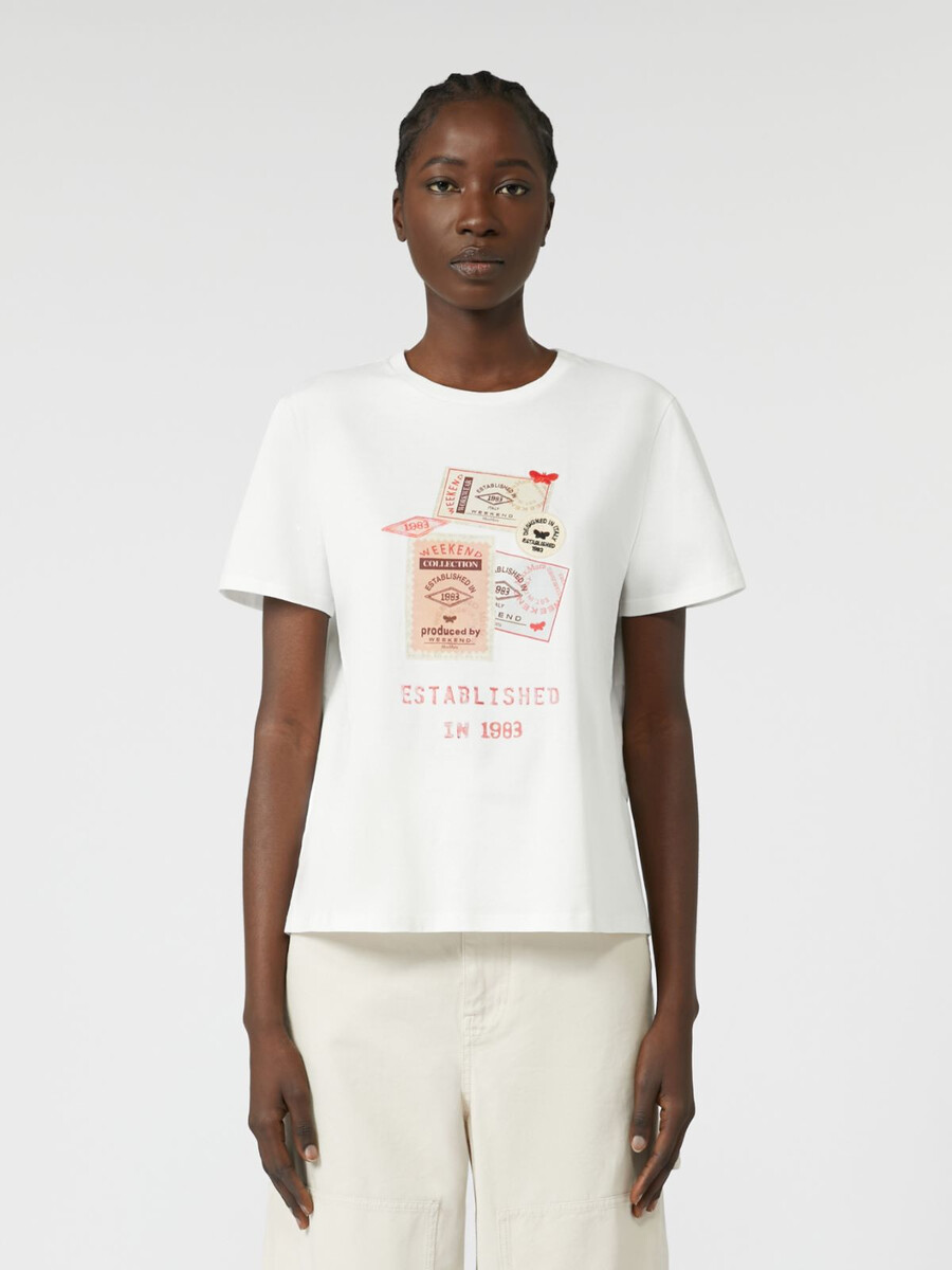 T-shirt basique personnalisé avec un imprimé et des détails brodés sur le devant.