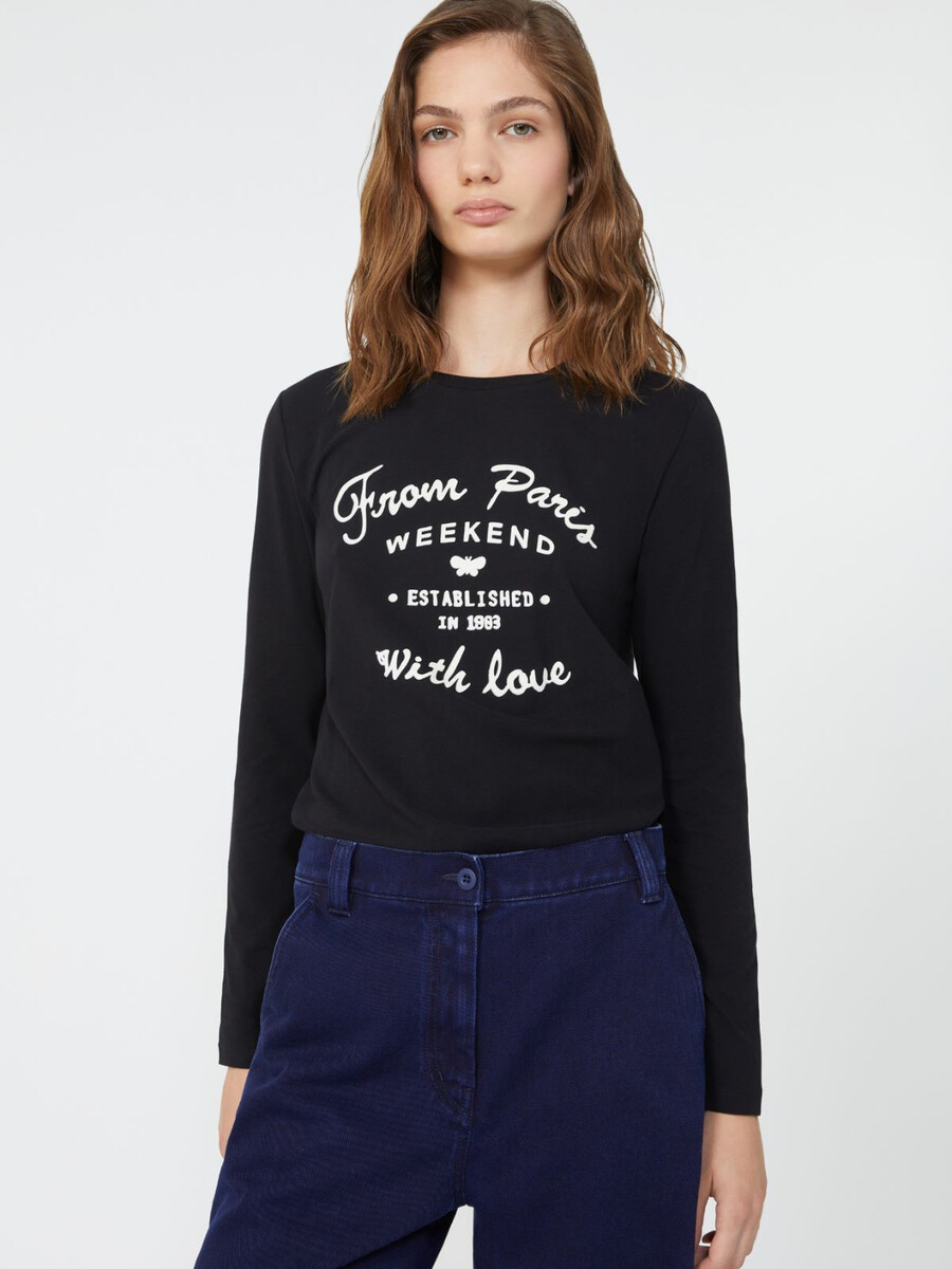 T-shirt à manches longues avec motif de la collection imprimé sur le devant.