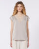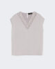 Débardeur sans manches orné d’une dentelle passementerie à l’encolure.