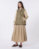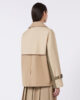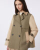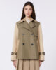 Trench-coat court croisé, caractérisé par son rabat tempête et ses pattes de serrage aux poignets.