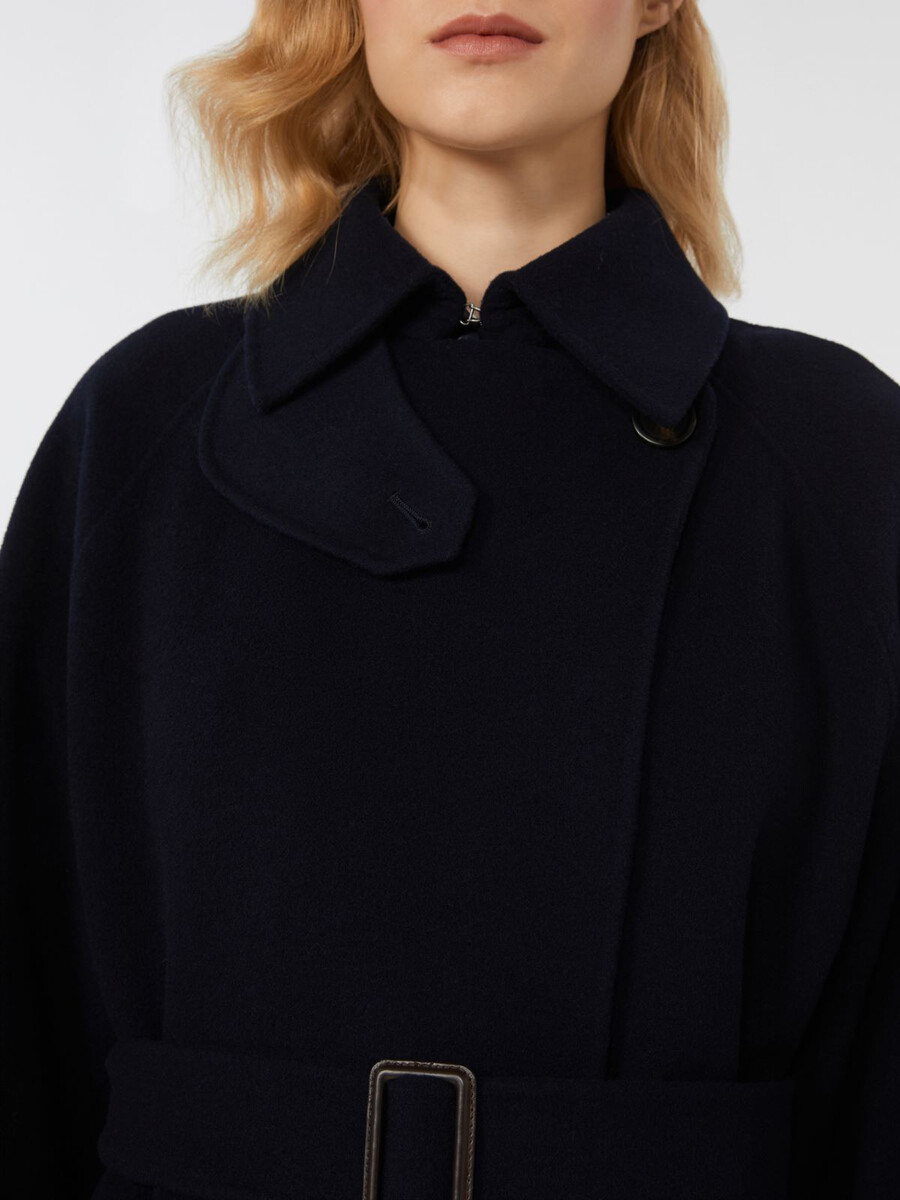 • Fermeture boutonnée apparente avec ceinture à boucle assortie