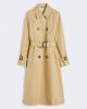 Trench-coat mi-long réversible avec cape imperméable et fente centrale au dos.
