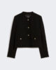 Veste courte à simple boutonnage, ornée d’une texture légèrement gaufrée et de franges.